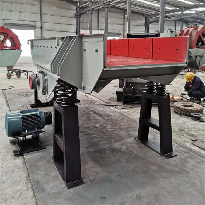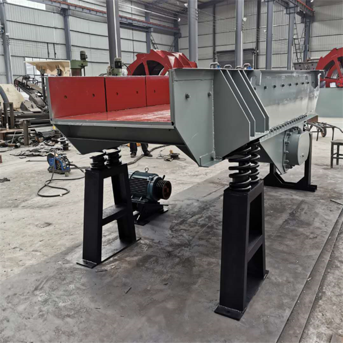 振动给料机又称振动喂料机,在生产流程中可把块状、颗粒状物料从贮料仓中均匀、定时、连续地给到受料装置中去,在砂石生产线中可为碎石机械连续均匀地喂料,并对物料进行粗筛分,广泛用于冶金、煤矿、选矿、建材、化工、磨料等行业的破碎、筛分联合设备中。