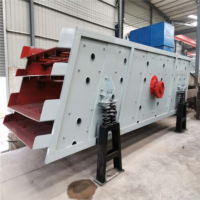 该振动筛采用结构简单,采用块偏心式结构,结构简单;可配套选择给料箱,给料箱的应用增加振动筛的筛分面积,同时延长进料端筛网使用寿命;传动部分增加了中间过渡轴承座,中间过渡轴承座的应用保护了电机,延长了电机使用寿命。电动机安装在筛框的左侧,也可安装在筛框的右侧。该系列筛机为座式安装。筛面倾角的调整可通过改变弹簧支座位置高度来实现。