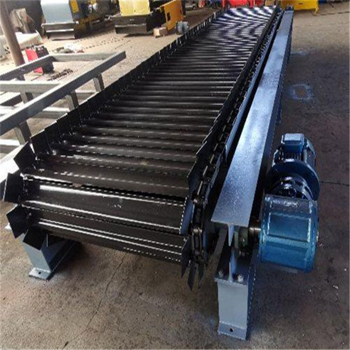 链板式输送机是一种通用型固定式机械化输送设备,用钢板做运载槽体,是板式输送机的一种,两根链条绕过安装在机体头部的一对驱动链轮和机体尾部的一对张紧轮联成封闭形回路,在两排链条的每个链节上装配了相互交迭的、重型结构的输送槽而成为一个连续的能够运载物料的输送线路。
