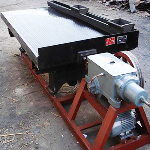 矿用摇床床面作回转运动中借惯性离心力强化选别过程的设备。矿浆及冲洗水能够沿床面横向运动。不同密度和粒度的矿粒在床面上呈扇形展开,经过筛选在6-s摇床尾部排出尾矿及精矿。