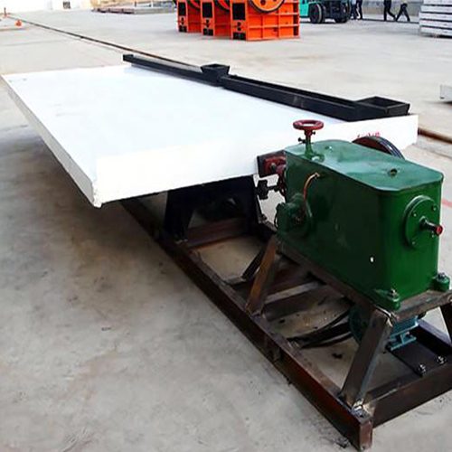 选矿摇床通常是由床面、机架和传动机构三大部分组成。除此之外还有冲水槽,给矿槽,机座等,整个床面由机架支撑或吊起,机架上装有调坡装置。