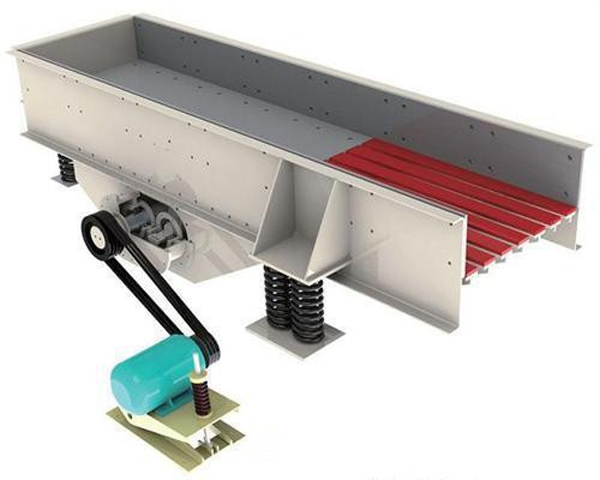 振动给料机又称振动喂料机,在生产流程中可把块状、颗粒状物料从贮料仓中均匀、定时、连续地给到受料装置中去,在砂石生产线中可为碎石机械连续均匀地喂料,并对物料进行粗筛分,广泛用于冶金、煤矿、选矿、建材、化工、磨料等行业的破碎、筛分联合设备中。